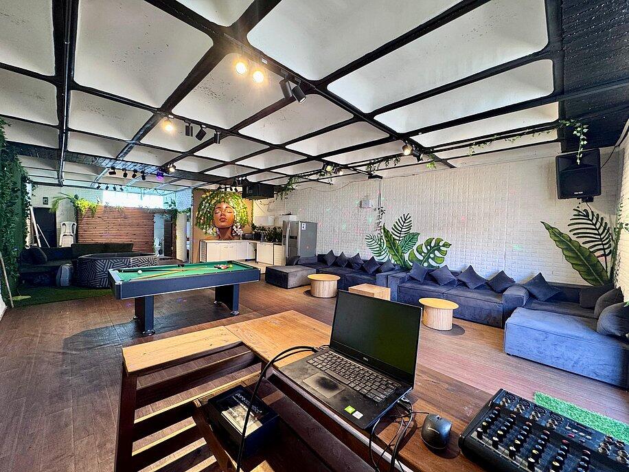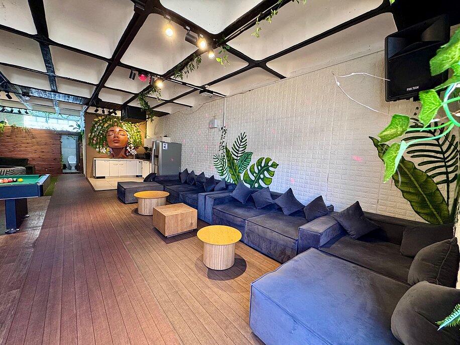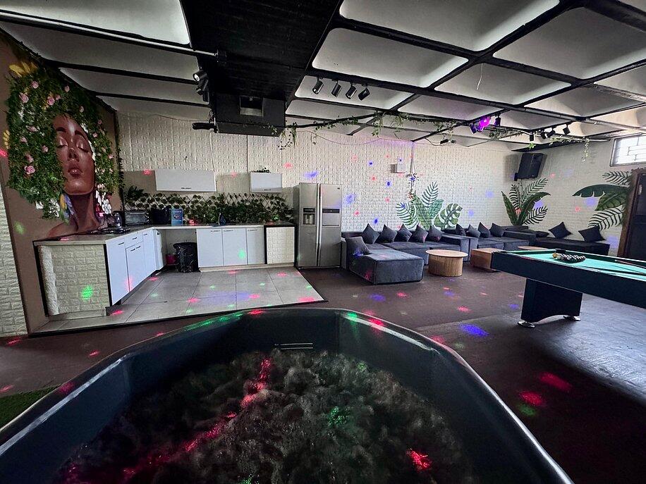 אירוח דיסקרטי עם חדר שינה מפנק, ספות יוקרתיות ובר ענק.